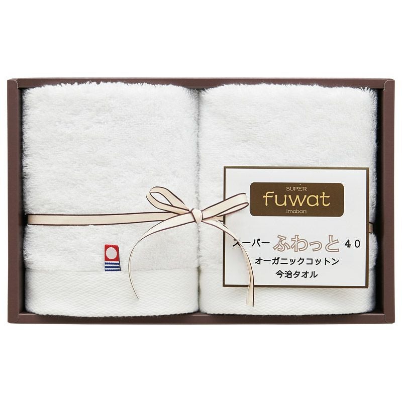 スーパーふわっと40 オーガニックコットン今治ハンドタオル2P(ホワイト)