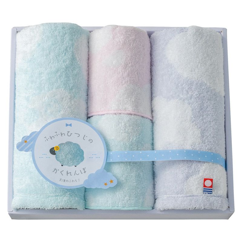 天使のふわもこ ふわふわひつじのかくれんぼ ウォッシュ2P・タオルハンカチ2P
