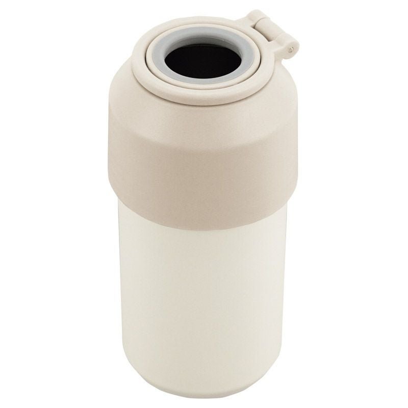 真空二重ステンレスで飲みごろキープ。500~600mlのペットボトルサイズに対応します。持ちやすい大きな輪っかのハンドル付。