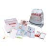 非常袋(反射テープ付)(約440×380mm)×1、非常用給水バッグ(3L)・ハンディライト・軍手・ロープ(3m)・笛・防寒シート・救急絆創膏(2サイズ40枚入)・カイロ・マスク・防災ガイド×各1