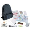 携帯リュック(約420×320×150mm)×1、ハンディライト・防寒シート・防災ガイド・レインポンチョ・長期保存厚手おしぼり(大判)・非常用給水バッグ(3L)・軍手・ロープ(3m)・笛・マスク・カイロ・非常用トイレ×各1