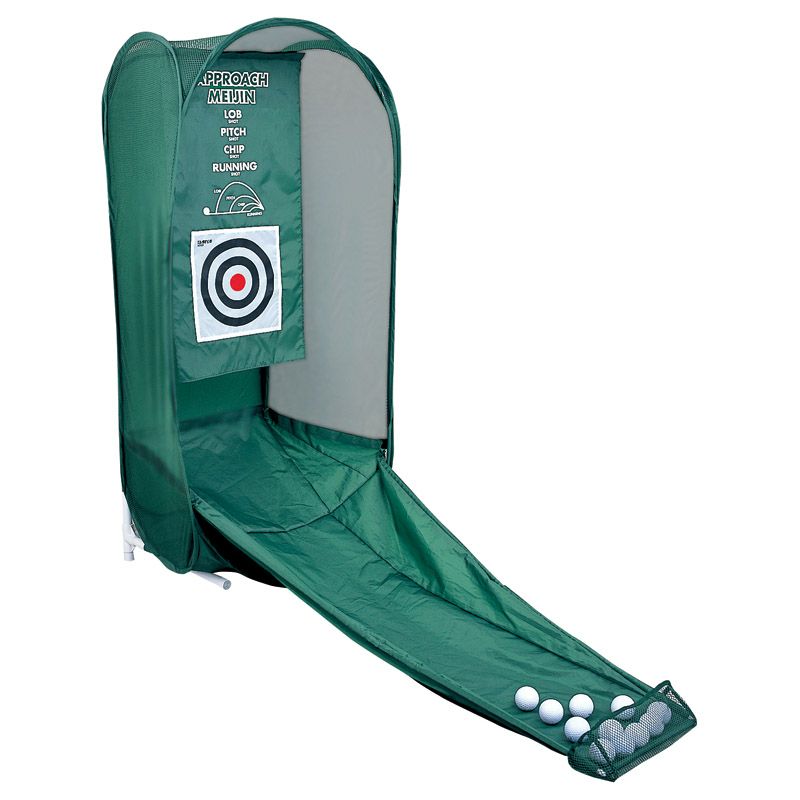 ビッグサイズのリターン式アプローチネット。リターンタイプ、4段階の高さが打ち分けられるタイプの2種類の的が使えます。リターンシート裏面に衝撃吸収ダブルネット仕様。大きいのに小スペースで収納できます。