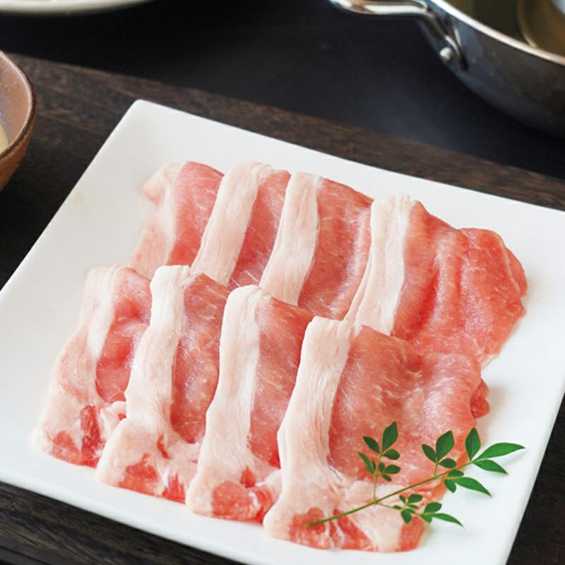水と緑と太陽の郷「千葉県東庄町」でスクスク育ったSPF豚 柔らかく、赤身と脂身のバランスが良いロース肉をしゃぶしゃぶ用でお届けします。