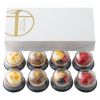 手のひらサイズのタルトに甘さ控えめのクリームやムース、色とりどりのフルーツを飾った銀座千疋屋オリジナルのフルーツタルト詰合せです。