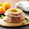 「ラ・ベットラ・ダ・オチアイ」落合シェフ監修の、オレンジピールを細かく刻んで生地に練り込み焼き上げたバウムクーヘンです。内側はしっとり、シュガーコーティングした外側はサクッとした食感です。
