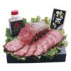 柔らかい肉質、人肌で溶ける脂質、甘くて上品な香りが特徴です。添付のソースは和風でさっぱりした後味なので、濃厚な松阪牛ローストビーフによくあいます。