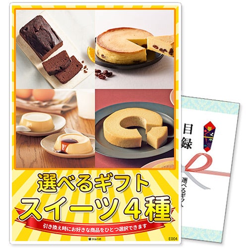他の画像を見る 選べるギフト景品 スイーツ4種コース【商品引換券】【A4パネル付】 商品引換券 パネル付き 当店特別価格 ¥ 2,500 税込 〜 当店特別価格 ¥ 税込 詳細を見る お気に入りに登録する