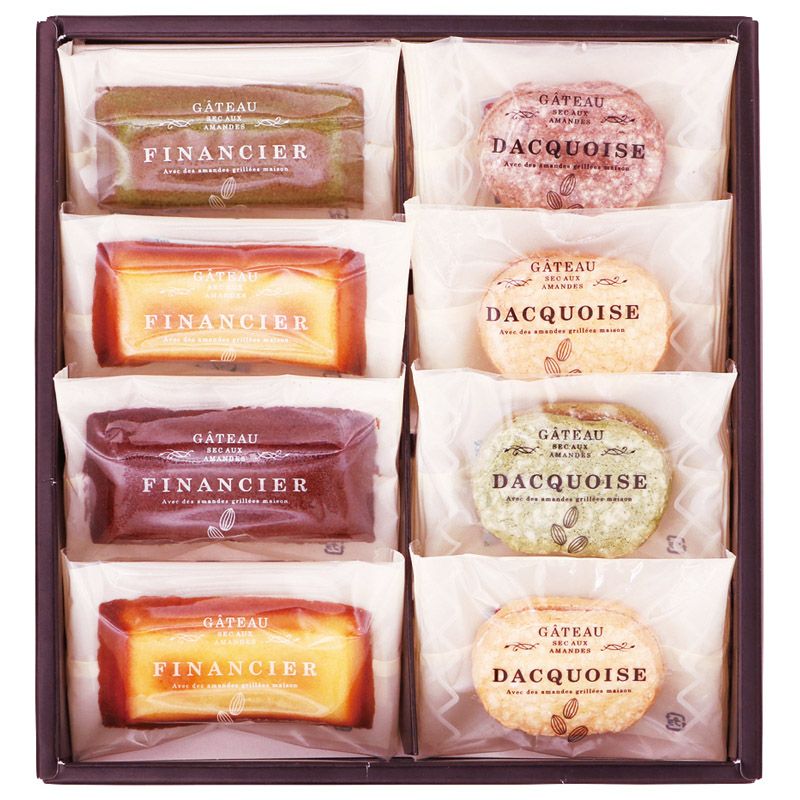 ダックワーズ(プラリネ)・フィナンシェ(プレーン)×各2、ダックワーズ(ショコラ・抹茶)・フィナンシェ(ショコラ・抹茶)×各1 ■アレルギー:卵・乳・小麦