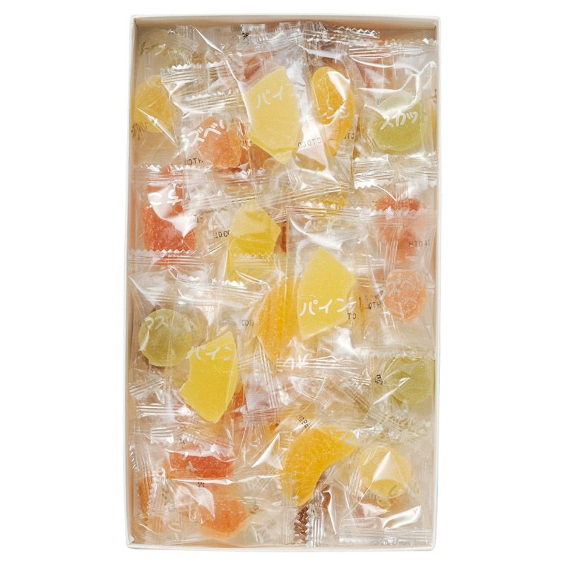 色々な種類の風味豊かなフルーツゼリーが入っています。宝石箱のようで、贈り物にも喜ばれます。