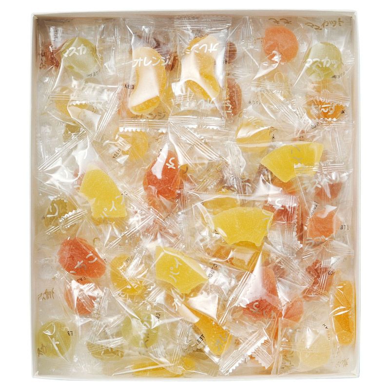 色々な種類の風味豊かなフルーツゼリーが入っています。宝石箱のようで、贈り物にも喜ばれます。