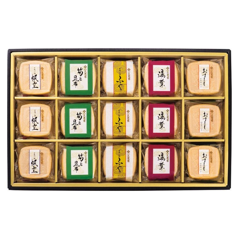 帆立(約12g)・筍と昆布(約12g)・ふぐ(約12g)・湯葉(約12g)・おすまし(約12g)×各3 ■アレルギー:小麦