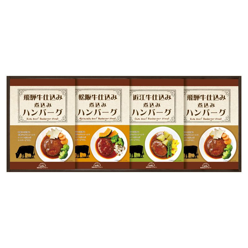 飛騨高山ファクトリー 松阪牛・近江牛・飛騨牛仕込み食べくらべハンバーグ詰合せ
