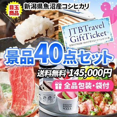 お米1年分にトラベルチケット!嬉しい目玉商品が入った景品40点セット【一部商品引換券】【送料無料】のレビューを書く