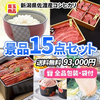 新潟産コシヒカリをメインにこだわりの景品をセレクトした景品15点セット【一部商品引換券】【多点数】【送料無料】のレビューを書く