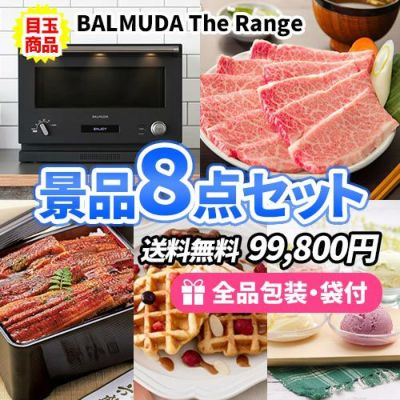 バルミューダレンジをメインに豪華グルメ景品が満載の景品8点セット【一部商品引換券】【送料無料】のレビューを書く