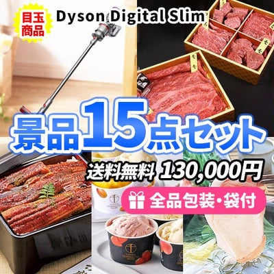 ダイソン コードレスクリーナーをメインにこだわりの景品をセレクトした景品15点セット【一部商品引換券】【多点数】【送料無料】のレビューを書く