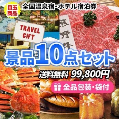 全国温泉宿・ホテル宿泊券に食品や雑貨を含めた豪華景品10点セット【一部商品引換券】【送料無料】のレビューを書く
