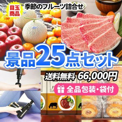 贅沢!季節のフルーツ盛合せを目玉にこの価格で大満足の景品25点セット【一部商品引換券】【送料無料】のレビューを書く