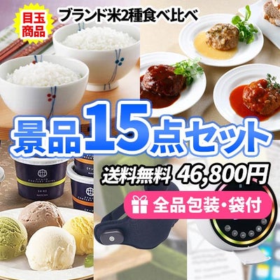 当たって嬉しいブランド米食べ比べに黒毛和牛ハンバーグ!充実の景品15点セット【一部商品引換券】【送料無料】のレビューを書く