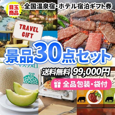 全国温泉宿・ホテル宿泊券を目玉に松阪牛も入った景品30点セット【一部商品引換券】【送料無料】のレビューを書く