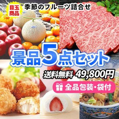 女性にも男性にも嬉しい!フルーツと松阪牛が目玉の景品5点セット【商品引換券】【即納商品】【送料無料】のレビューを書く