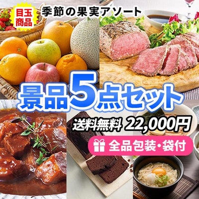 季節のフルーツ盛合せをメインに届くのが楽しみなグルメ景品5点セット【商品引換券】【即納商品】【送料無料】のレビューを書く