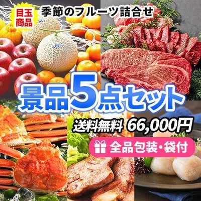 届くのが楽しみな食品ばかり!季節のフルーツ盛合せが目玉の景品5点セット【商品引換券】【即納商品】【送料無料】のレビューを書く