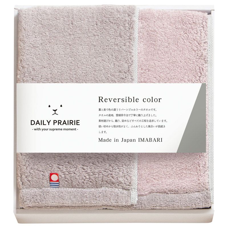 DAILYPRAIRIE リバーシブル フェイスタオル(グレージュ/ピンク)