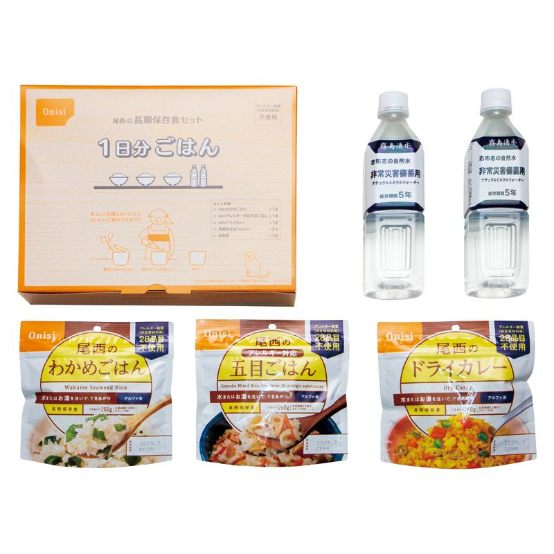 尾西の長期保存食セット1日分ごはん