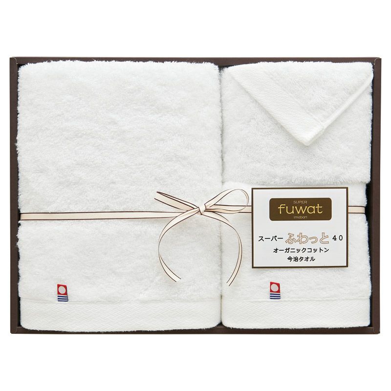 スーパーふわっと40 オーガニックコットン今治フェイス1P・ハンドタオル1P(ホワイト)