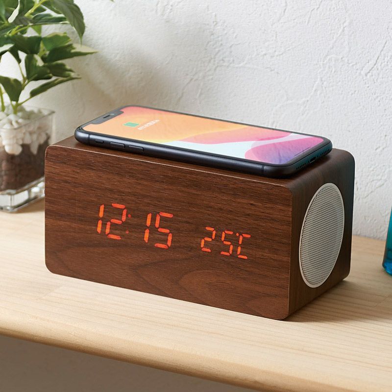 ブルートゥーススピーカー ワイヤレス充電機能付クロック