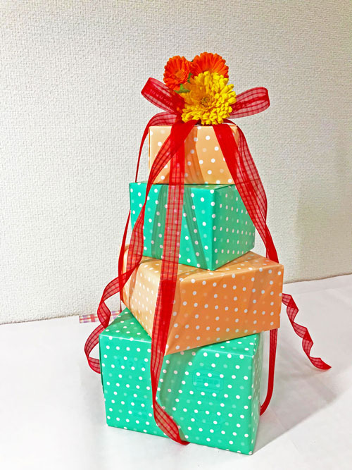 ラッピングのイメージです。実際にスタッフがラッピングしたものを掲載しています。